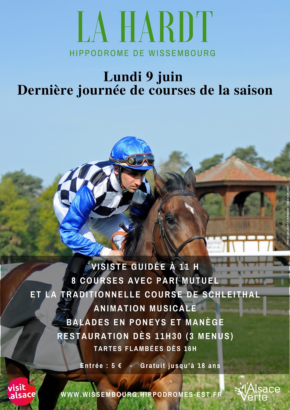 Ce lundi 9 juin 2025 nous cloturerons notre saison de courses 2025 à l’hippodrome de la Hardt avec notre traditionnelle réunion du Lundi de Pentecôte : 8 courses avec pari mutuel, début des opérations à 13h30.